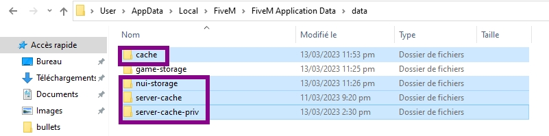 Le système de cache de FiveM est également utilisé pour stocker des fichiers temporaires, tels que les captures d'écran, les fichiers journaux et les fichiers de configuration.
